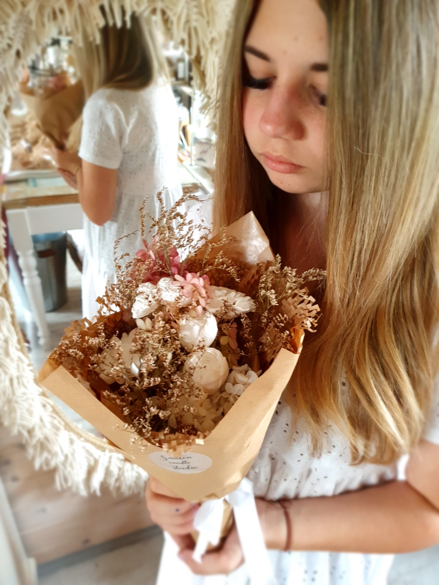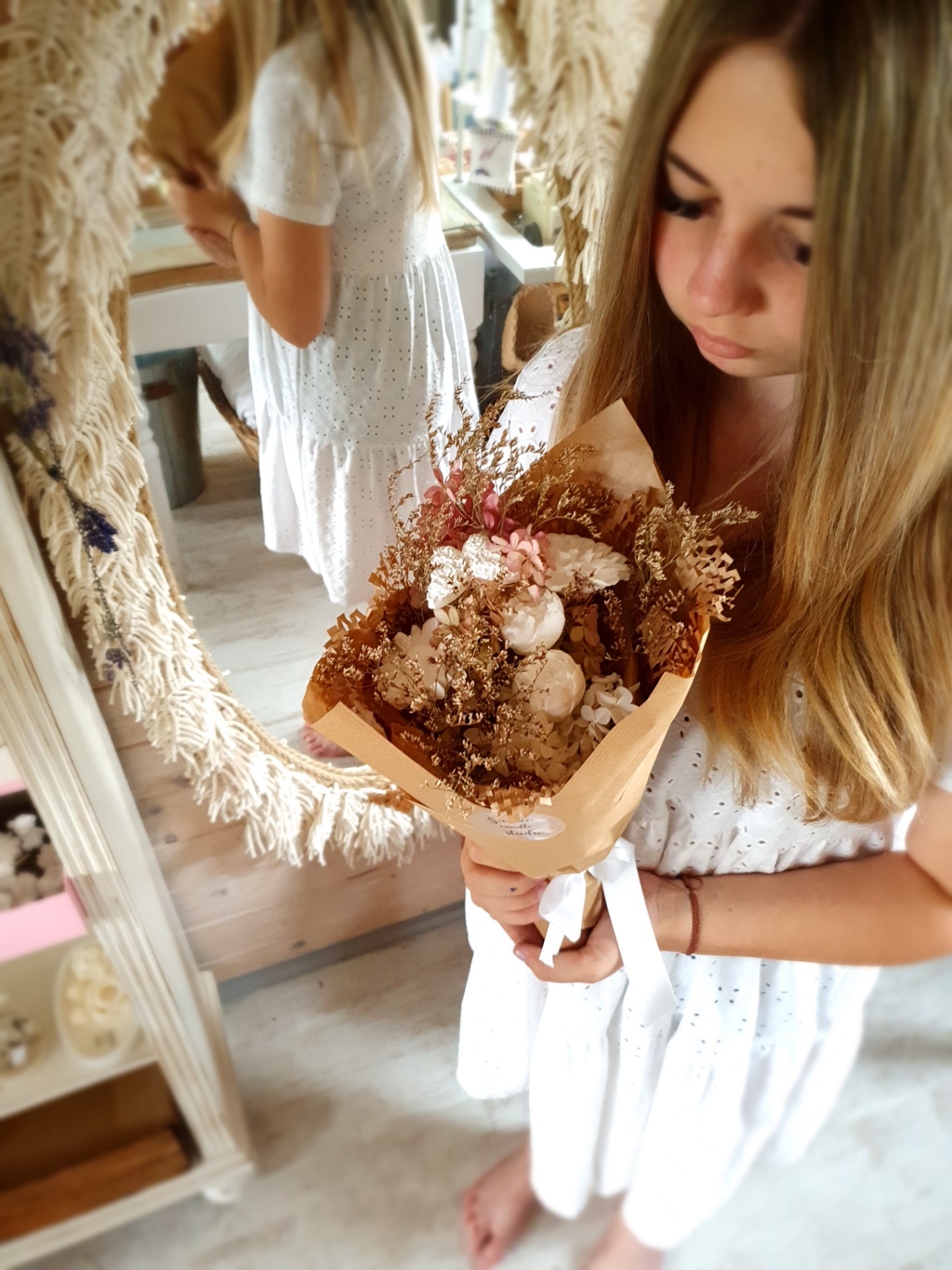 Každý kus je ručně vytvořený ze sušených květin z mé vlastní zahrady – pěstovaných s láskou, sklizených s péčí a naaranžovaných tak, aby přinesly do vašeho domova krásu a romantiku.