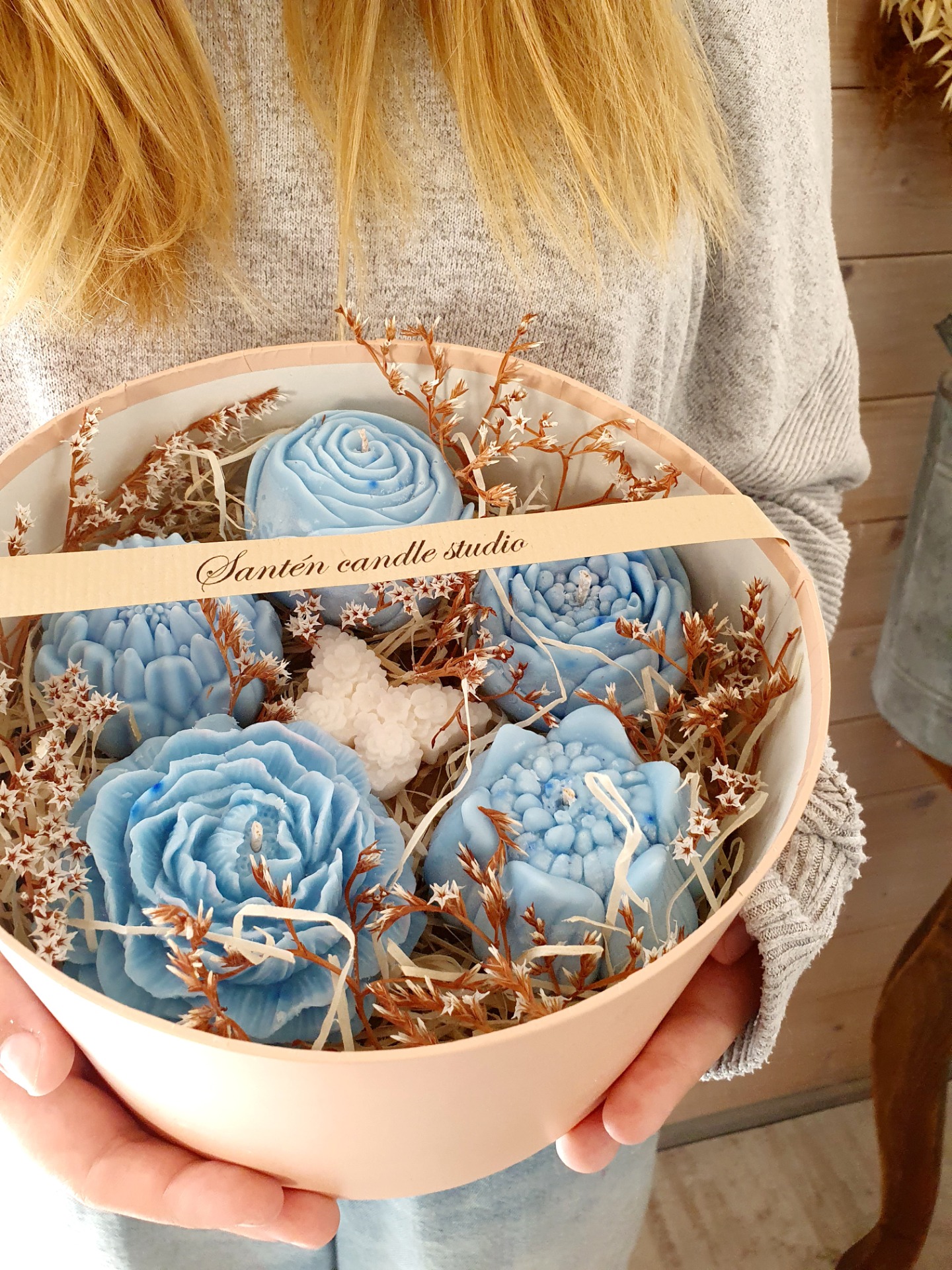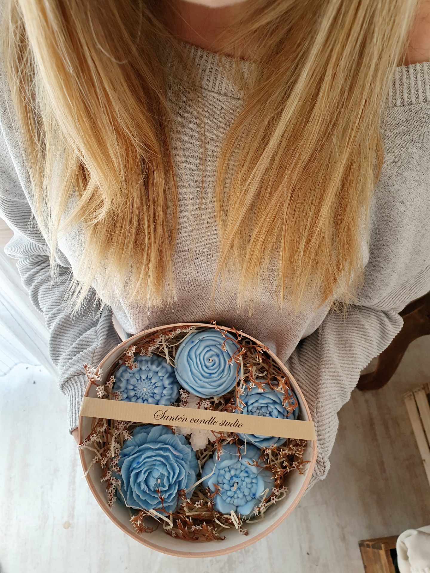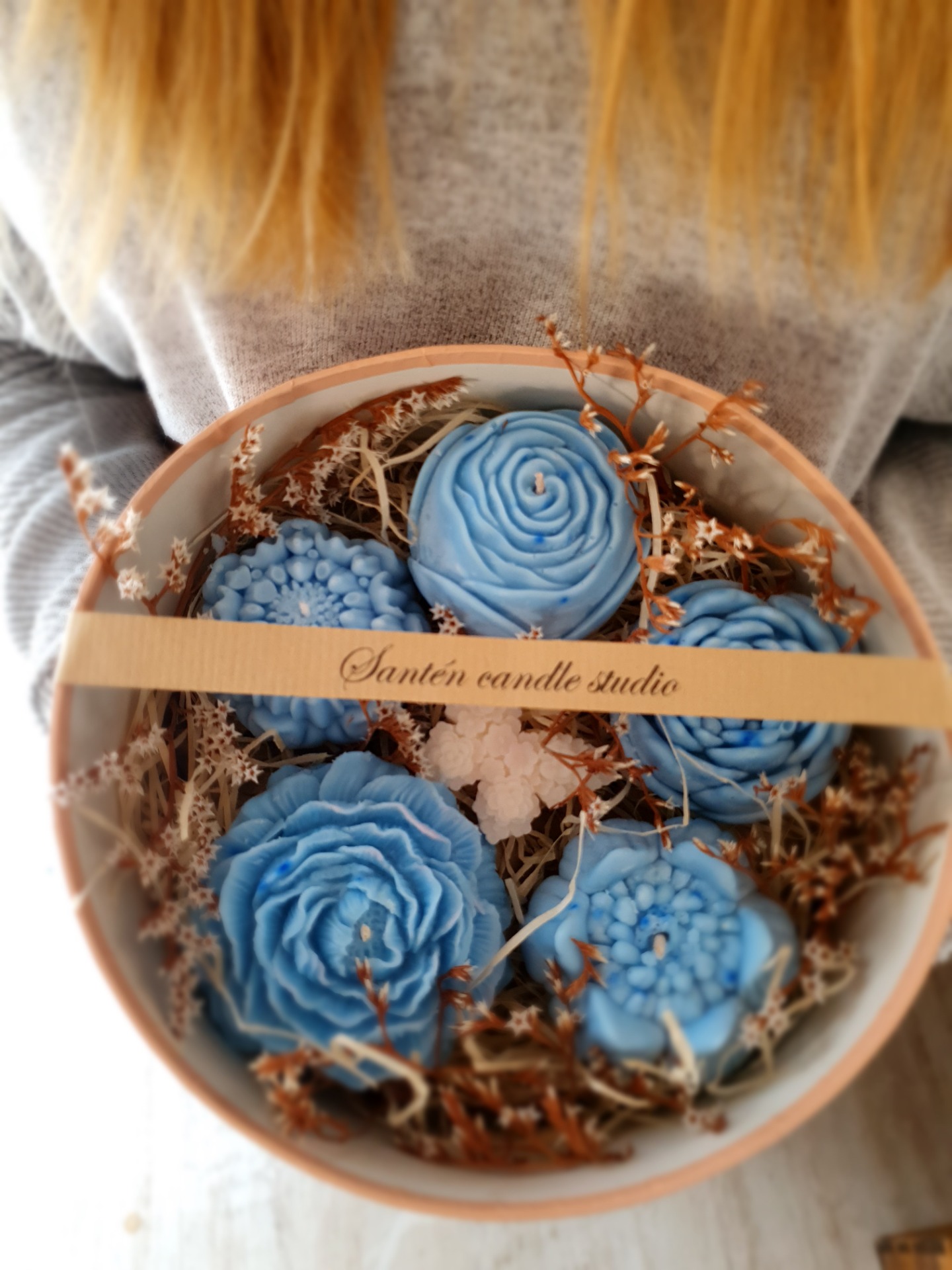 • Obsah balení: 5x ručně vyráběné květinové svíčky.