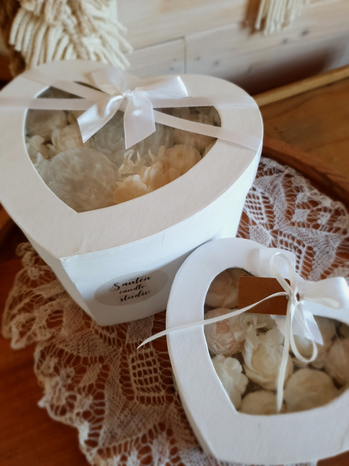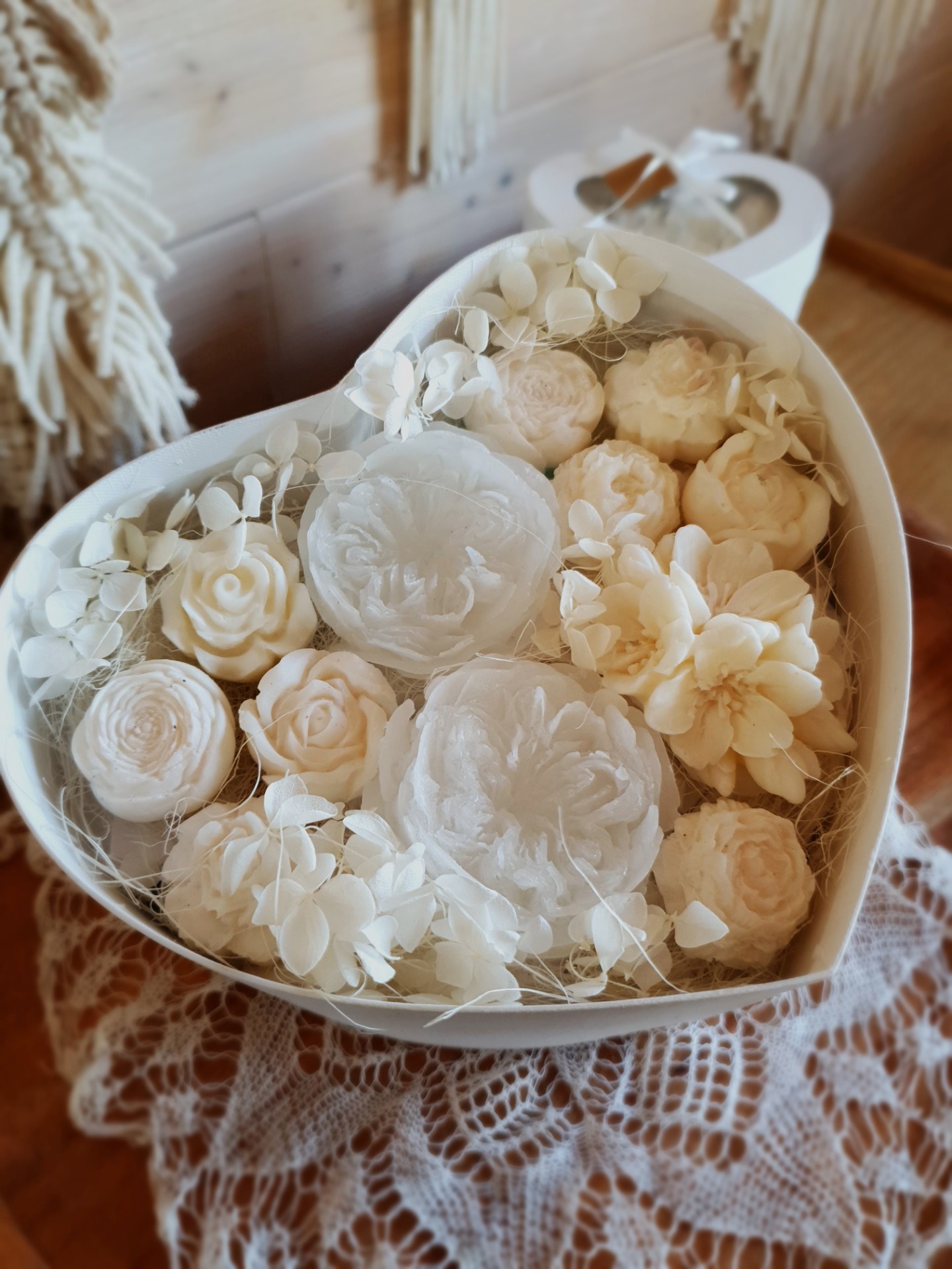 - něžné květy ze sójového vosku které působí velmi romanticky.