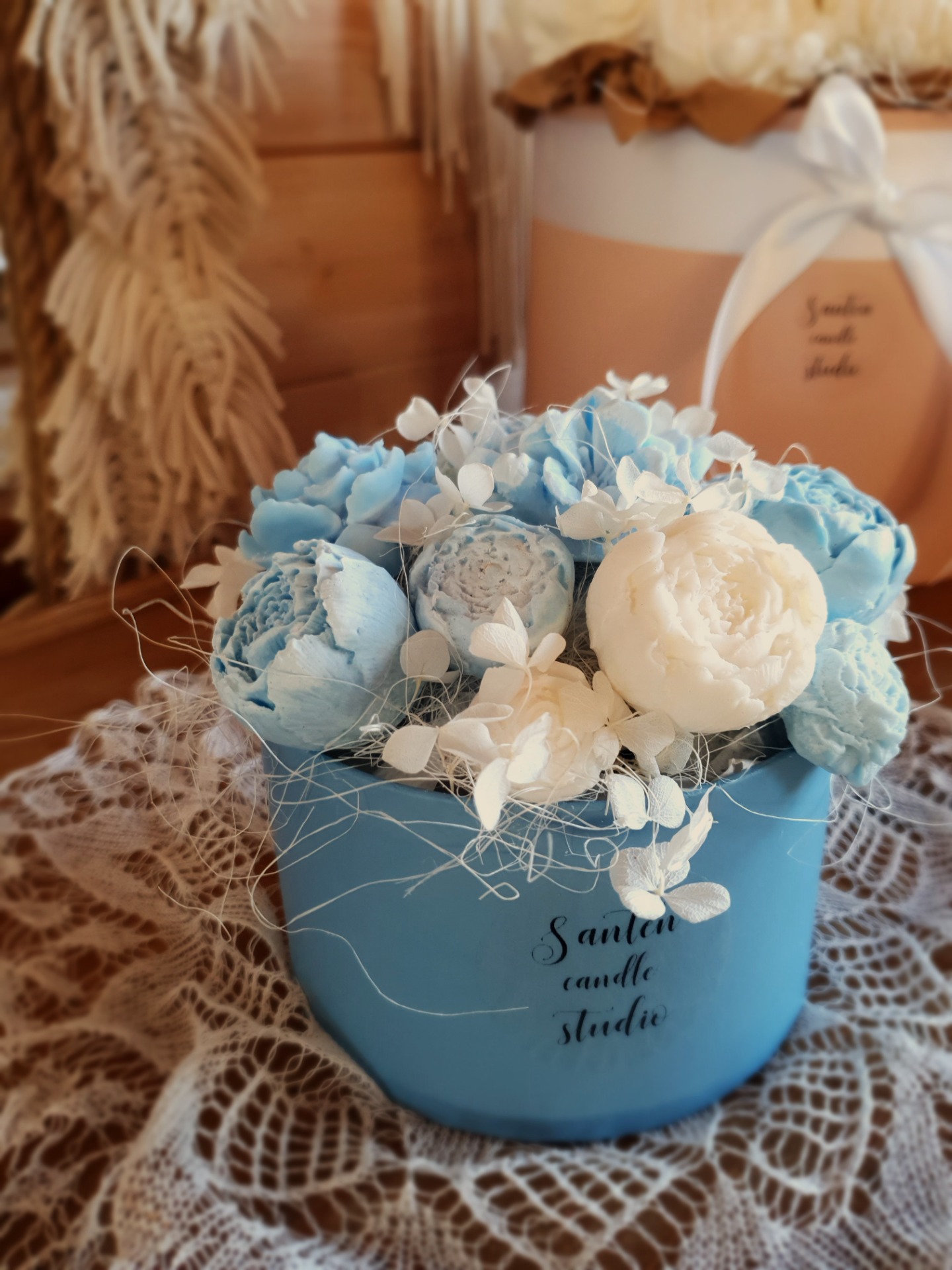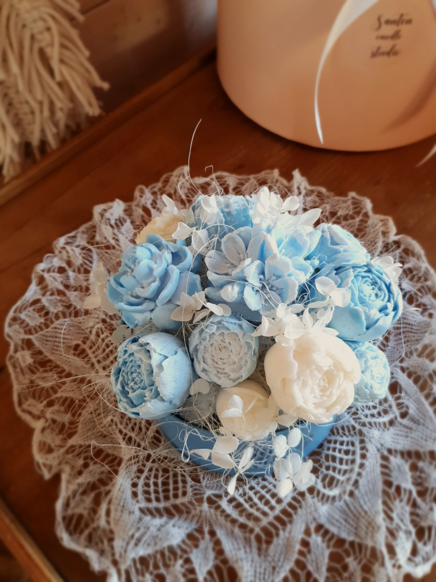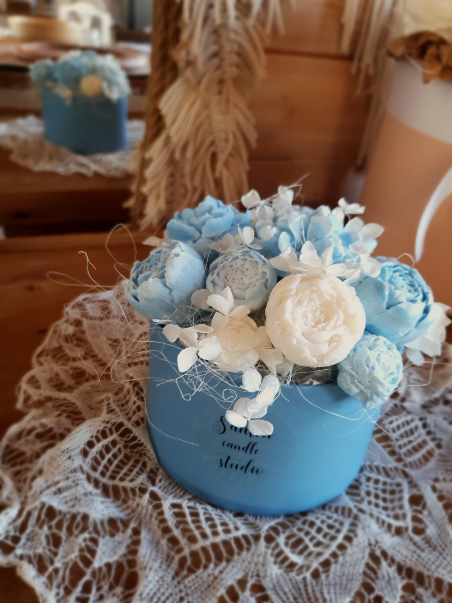 - něžné květy ze sójového vosku které působí velmi romanticky.