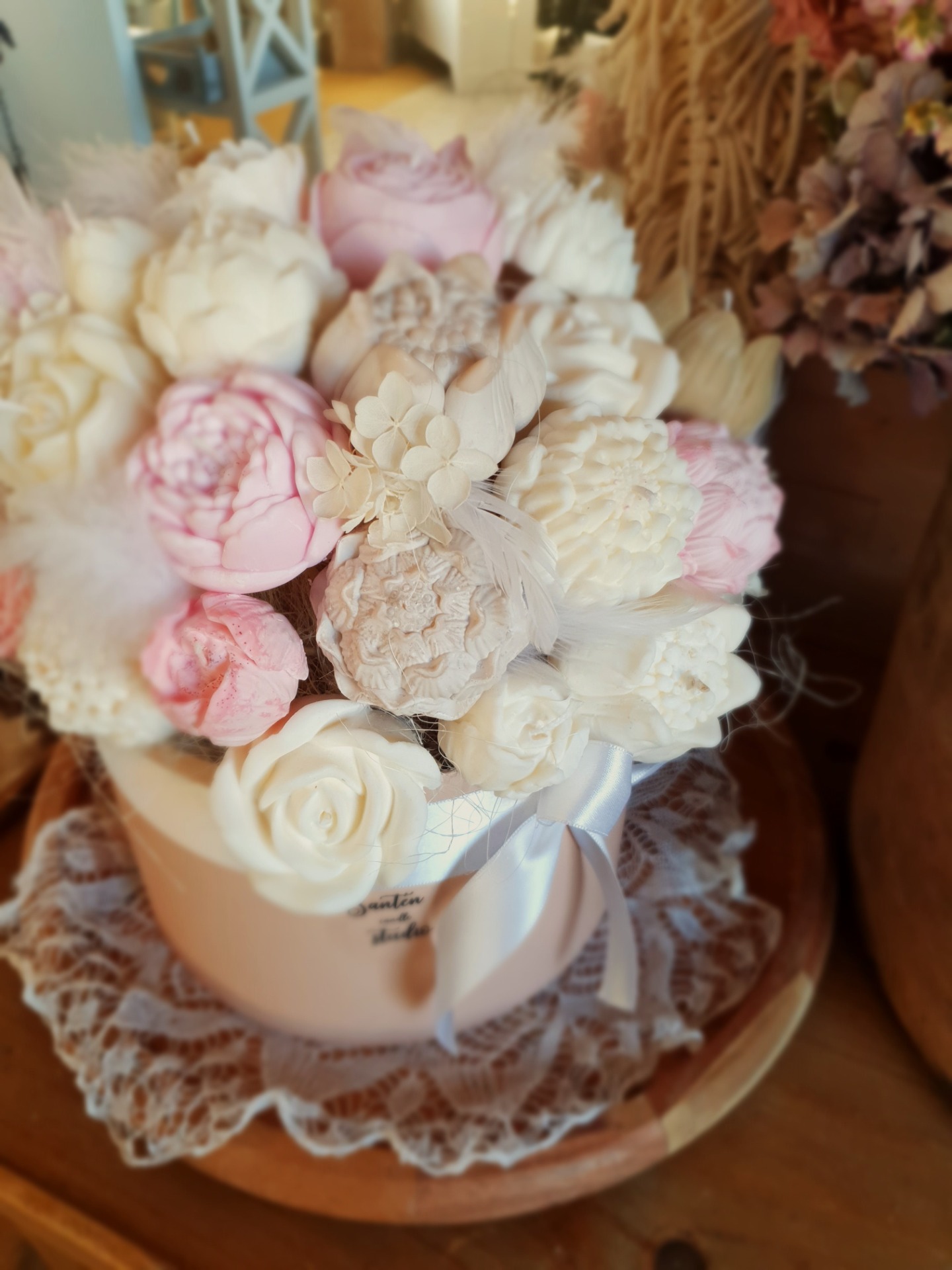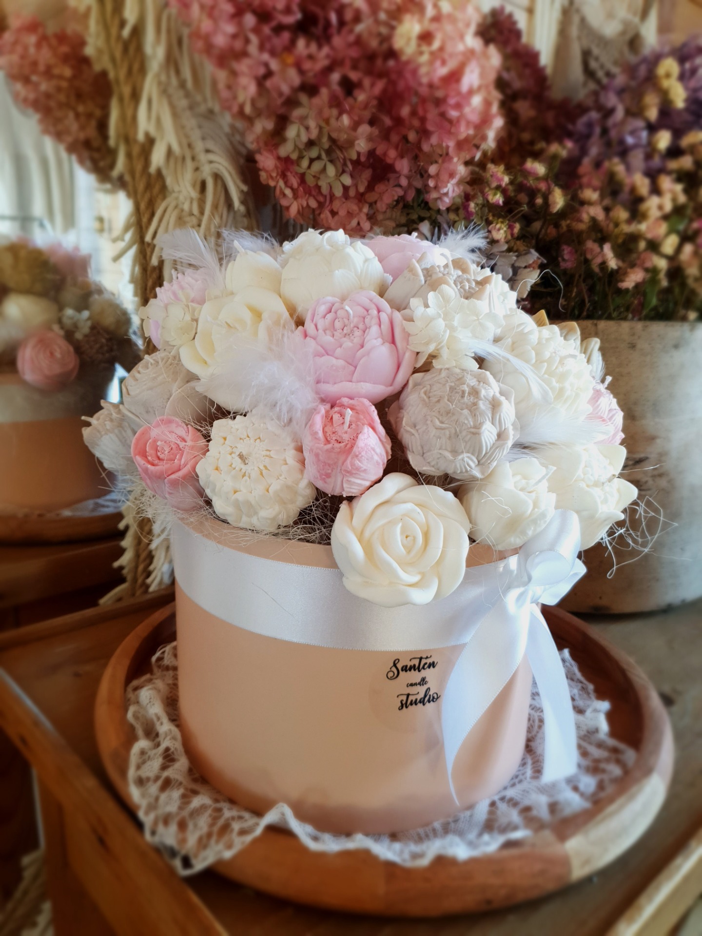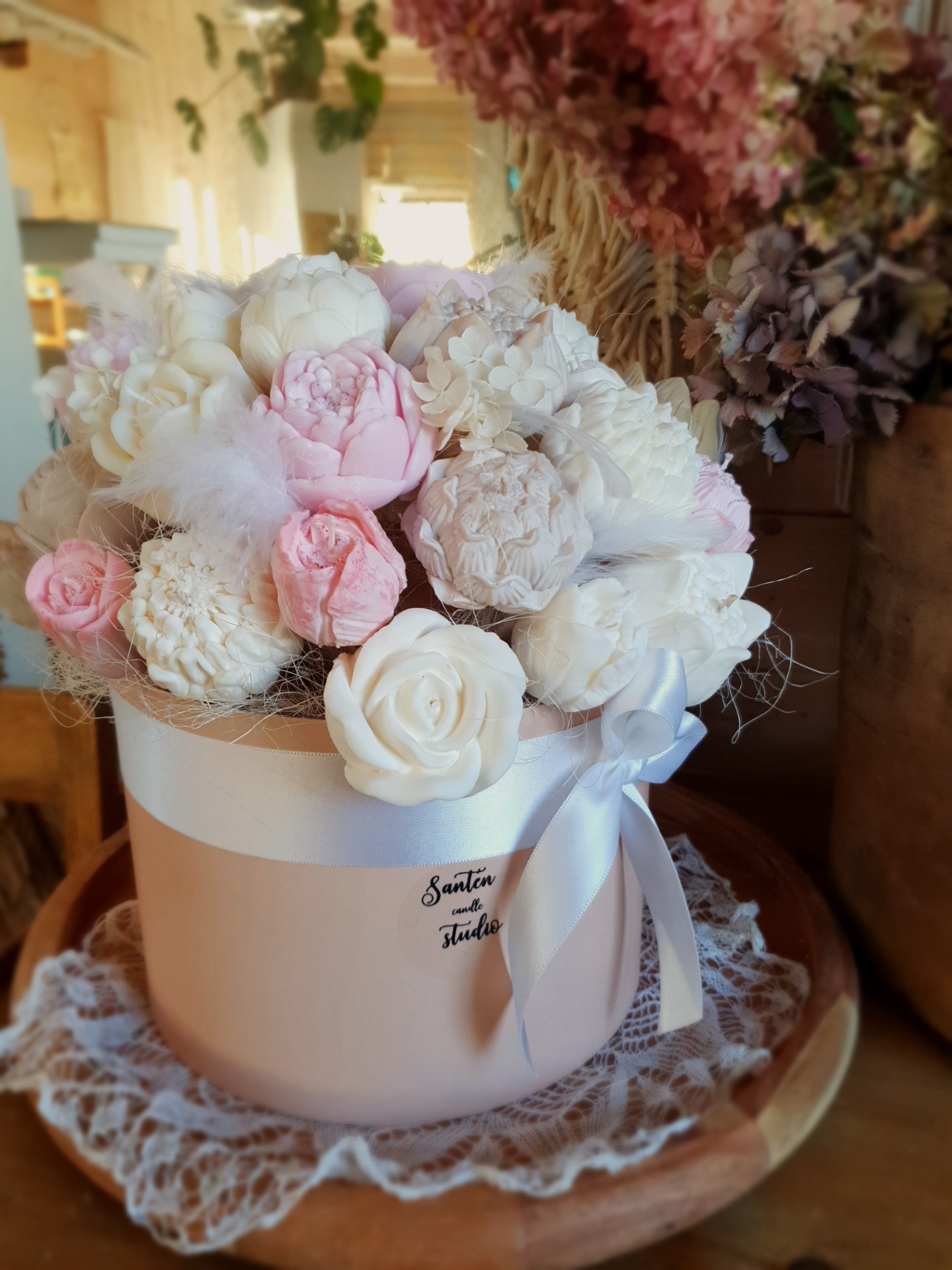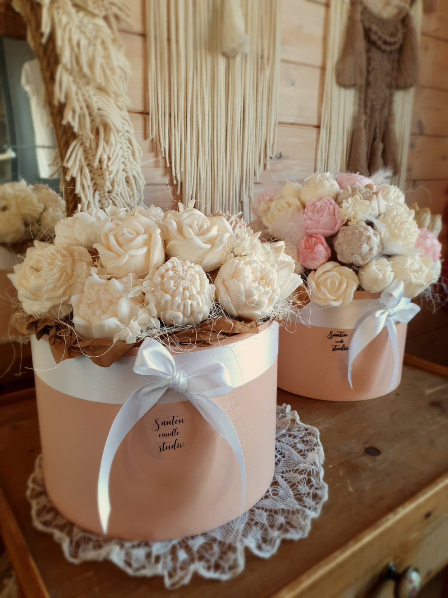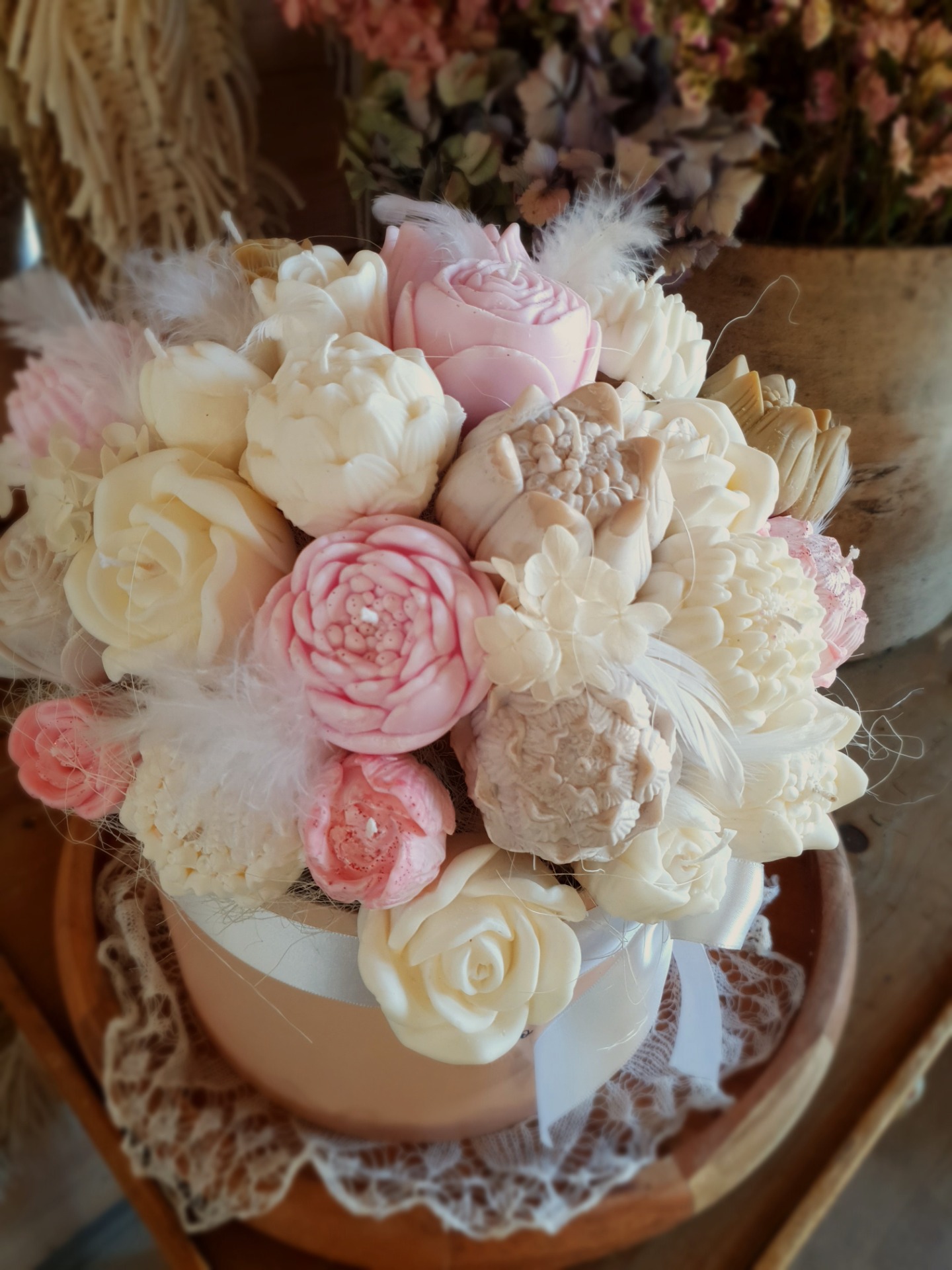 - něžné květy ze sójového vosku které působí velmi romanticky.
