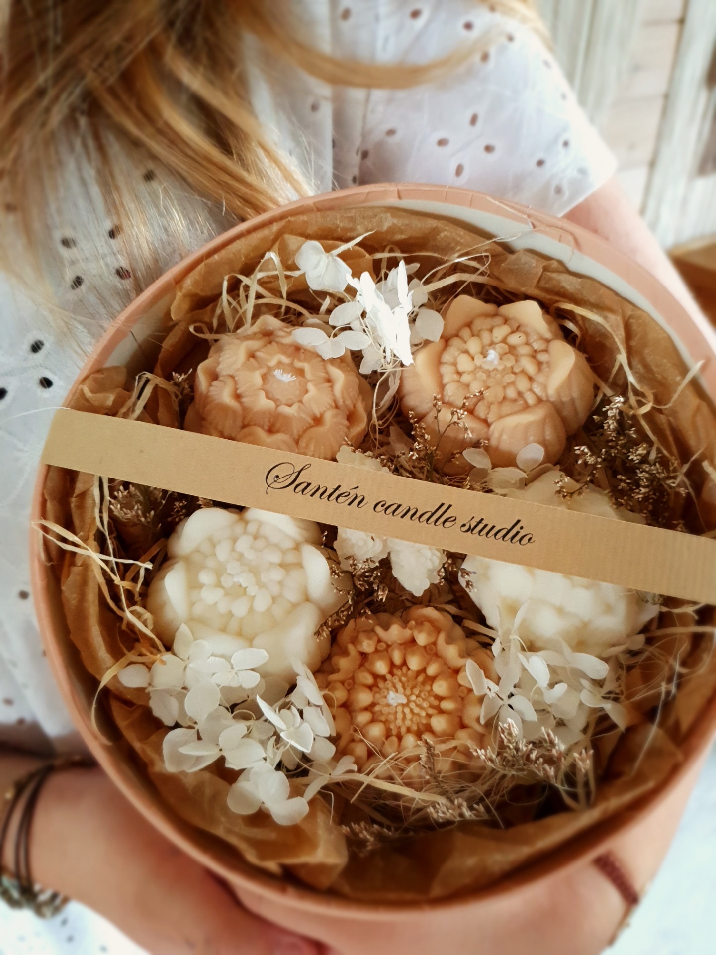 • Obsah balení: 6x ručně vyráběné květinové svíčky.