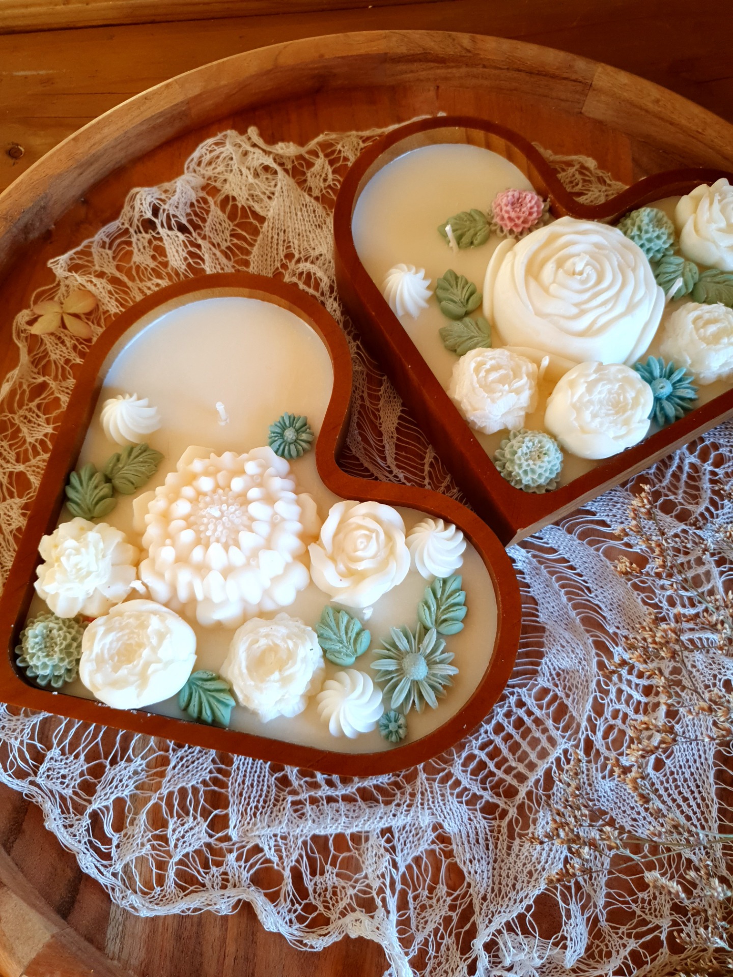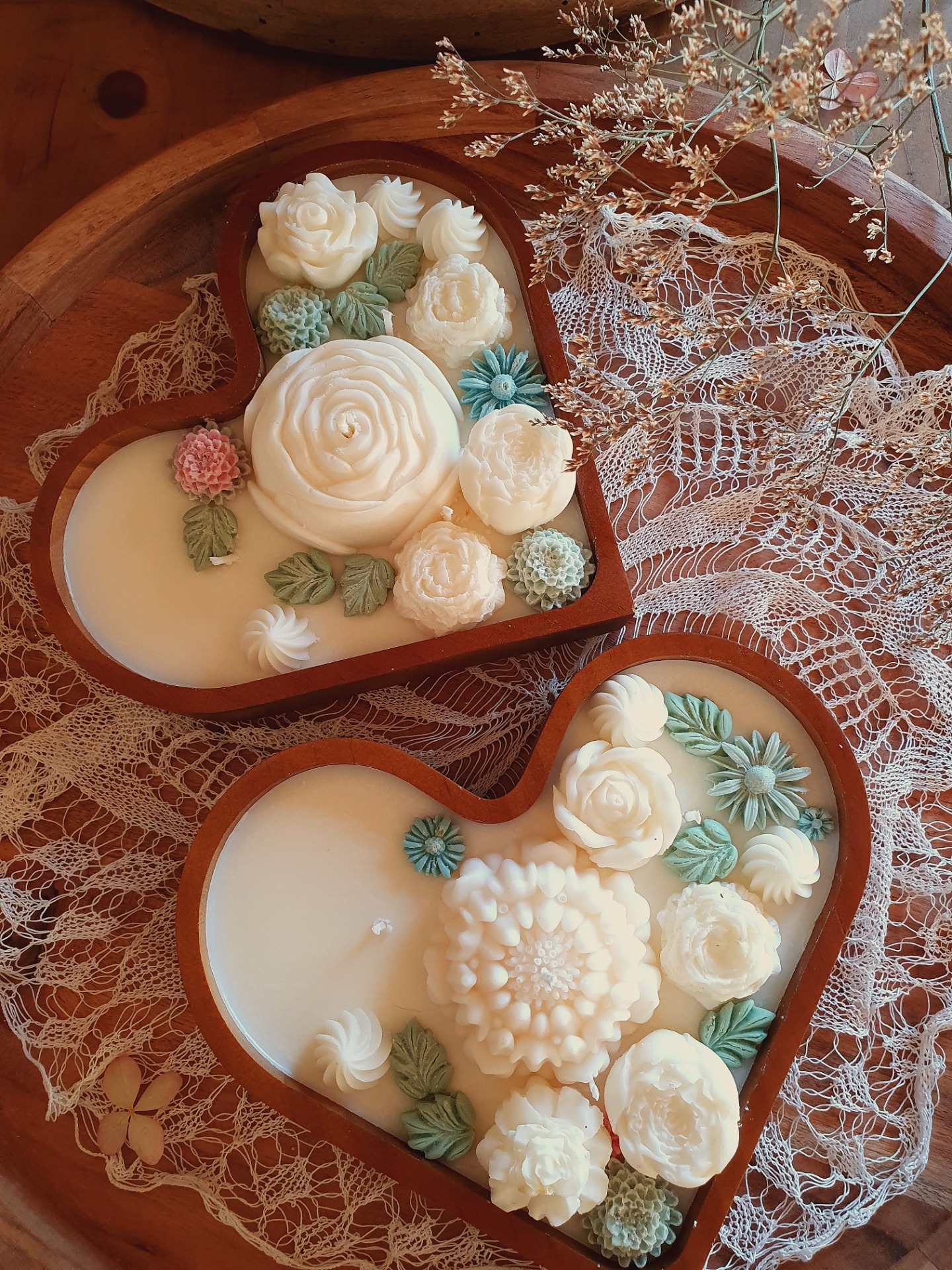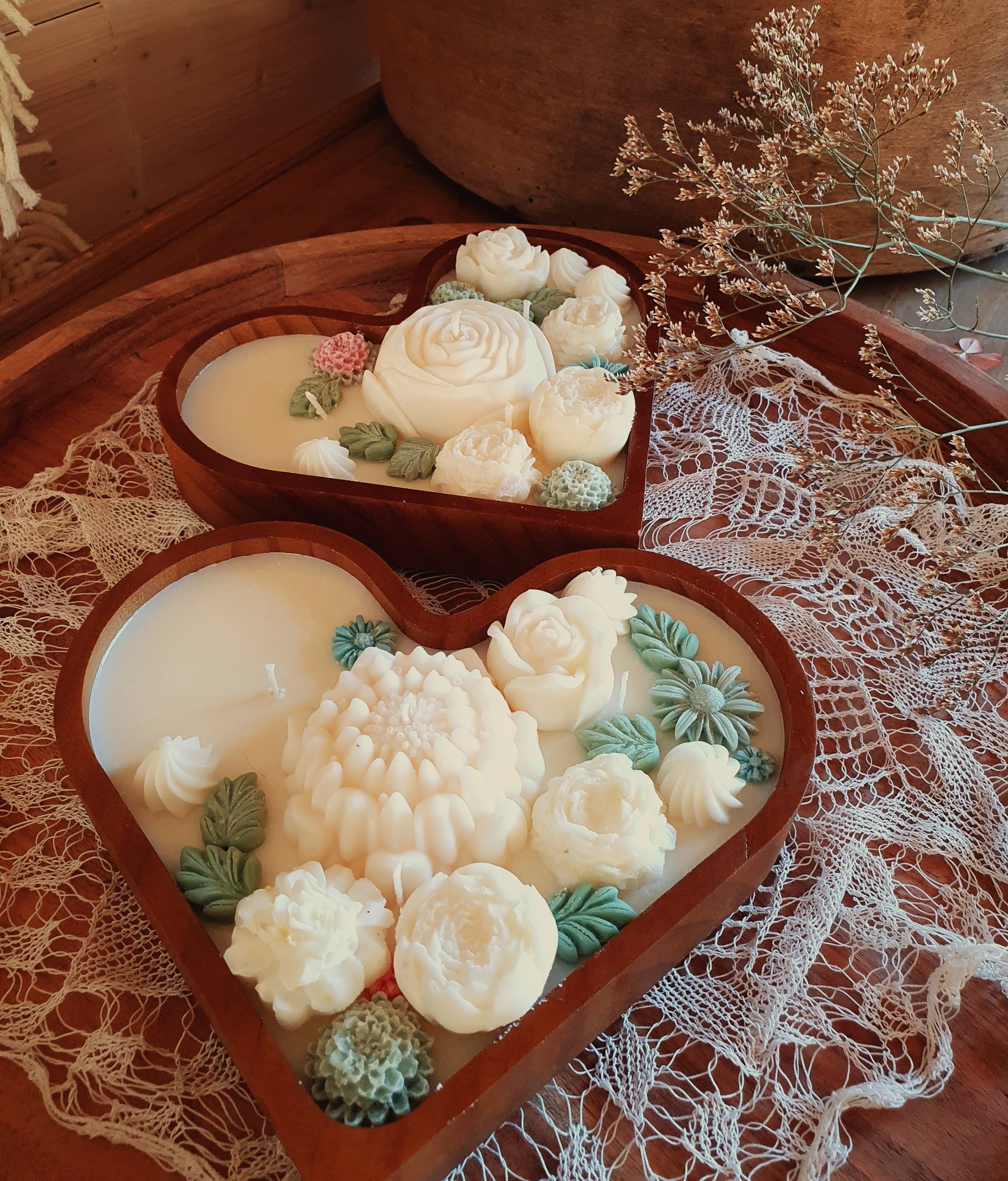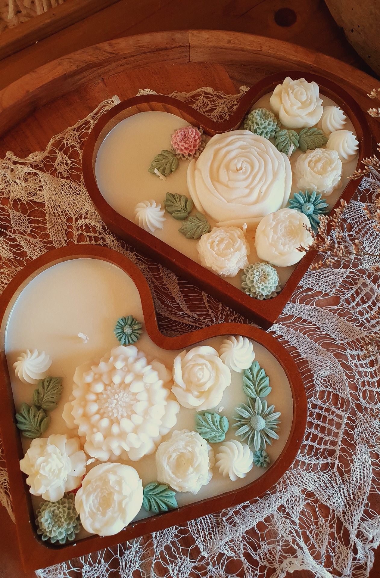 Ručně zdobené dřevěné srdce s jemnými květinovými motivy je poctou kráse přírody a ženské jemnosti. Každý květ je pečlivě modelovaný a zasazen do romantické kompozice, která rozzáří každý interiér.