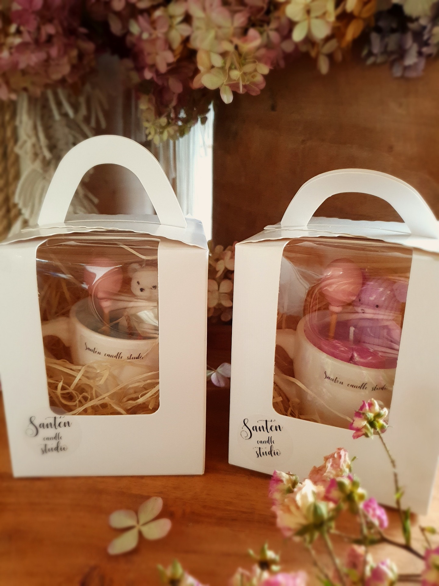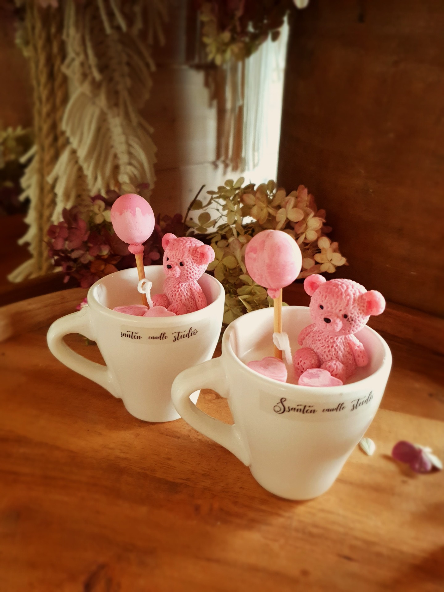 Uvnitř najdete ručně modelovaného medvídka s balónkem, který dodává svíčce hravý a něžný charakter.