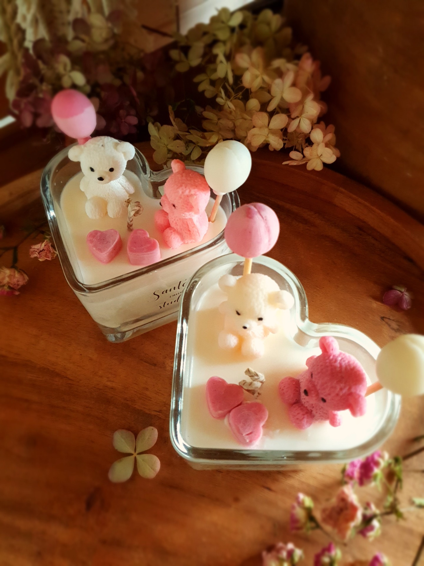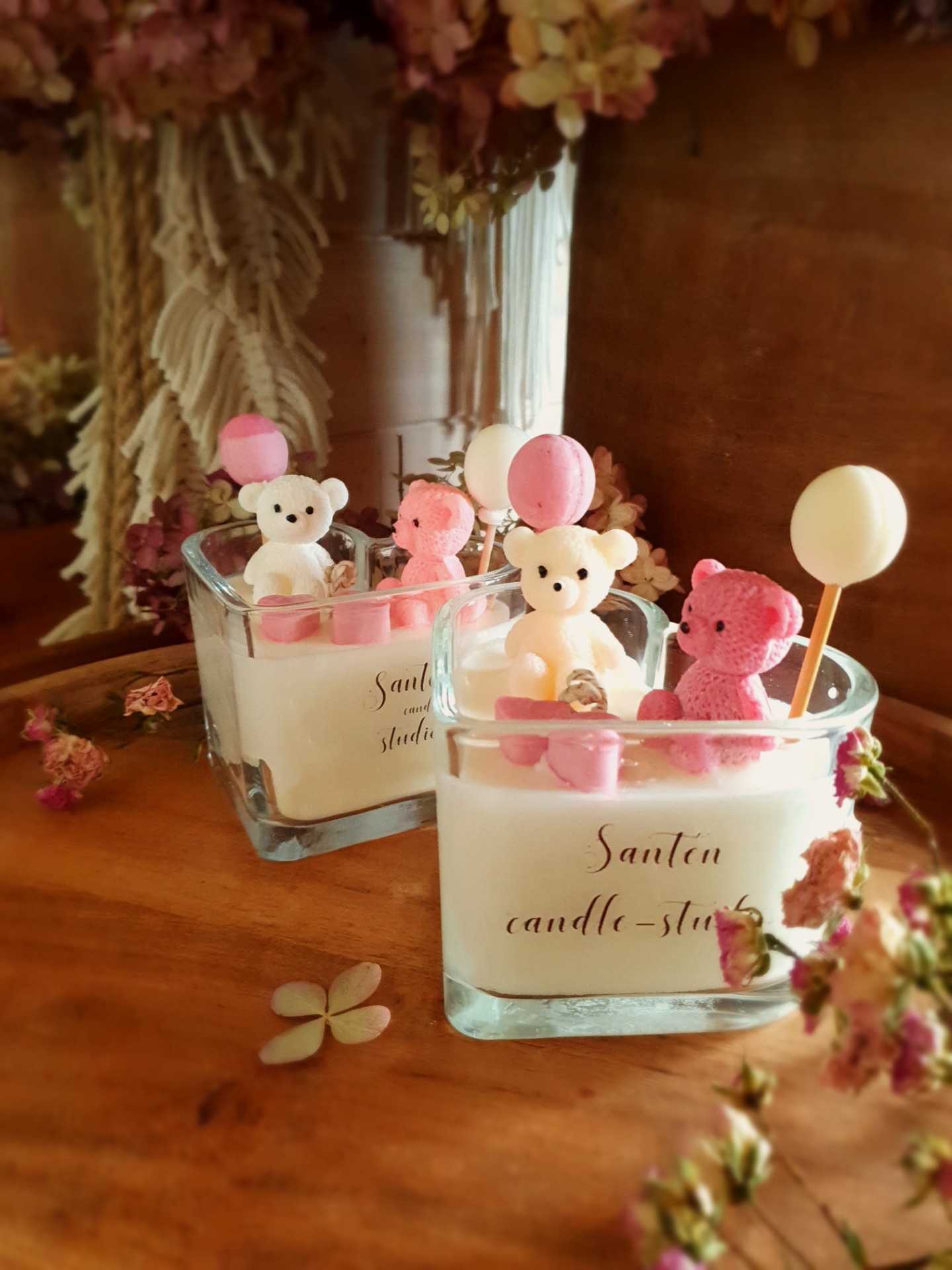 Svíčka se dvěma medvídky ze sójového vosku bez vůně.