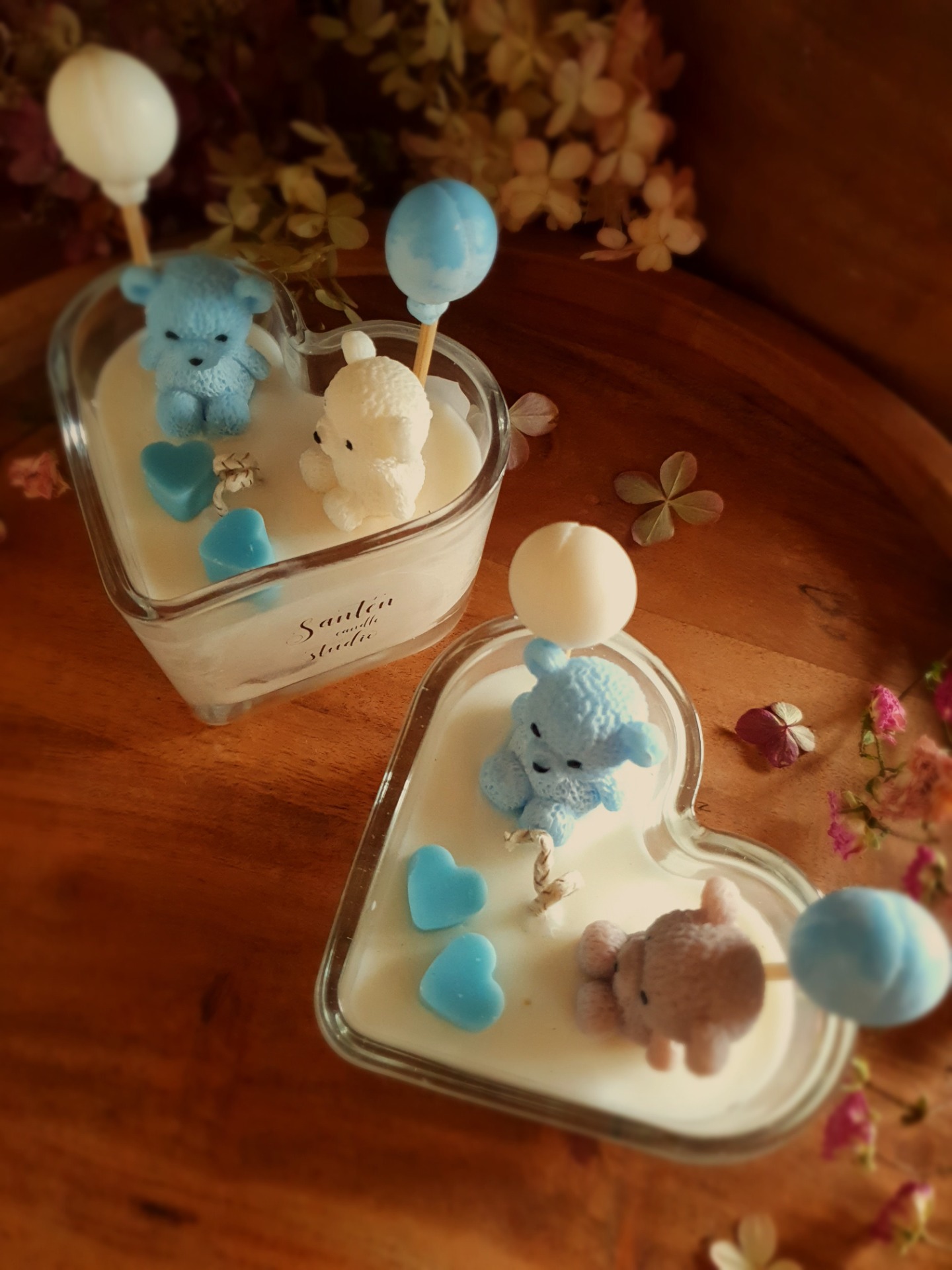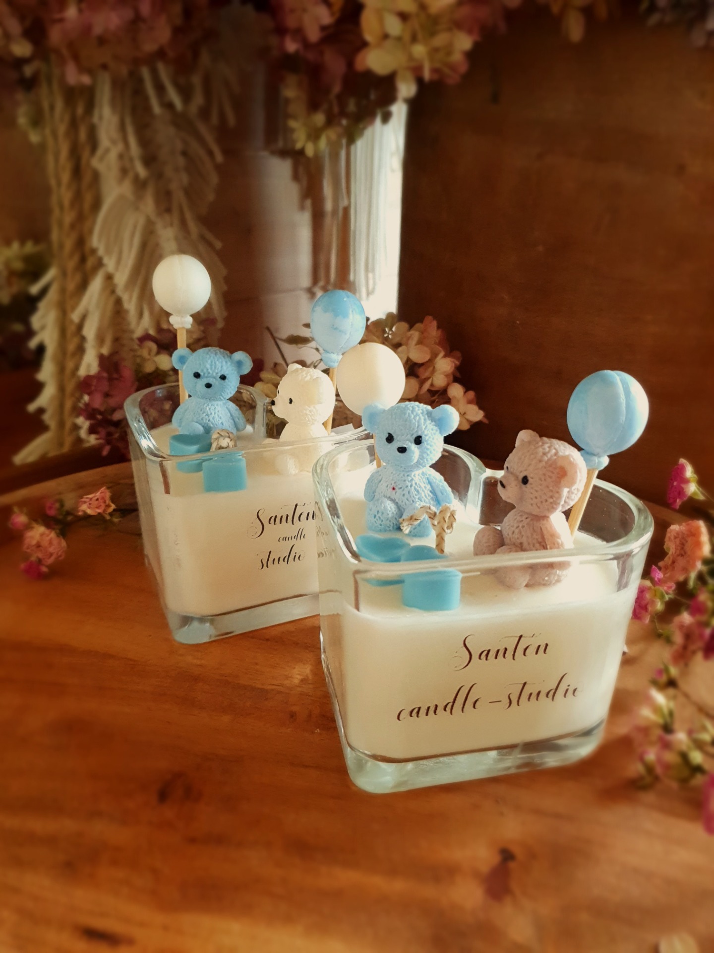 Svíčka se dvěma medvídky ze sójového vosku bez vůně.