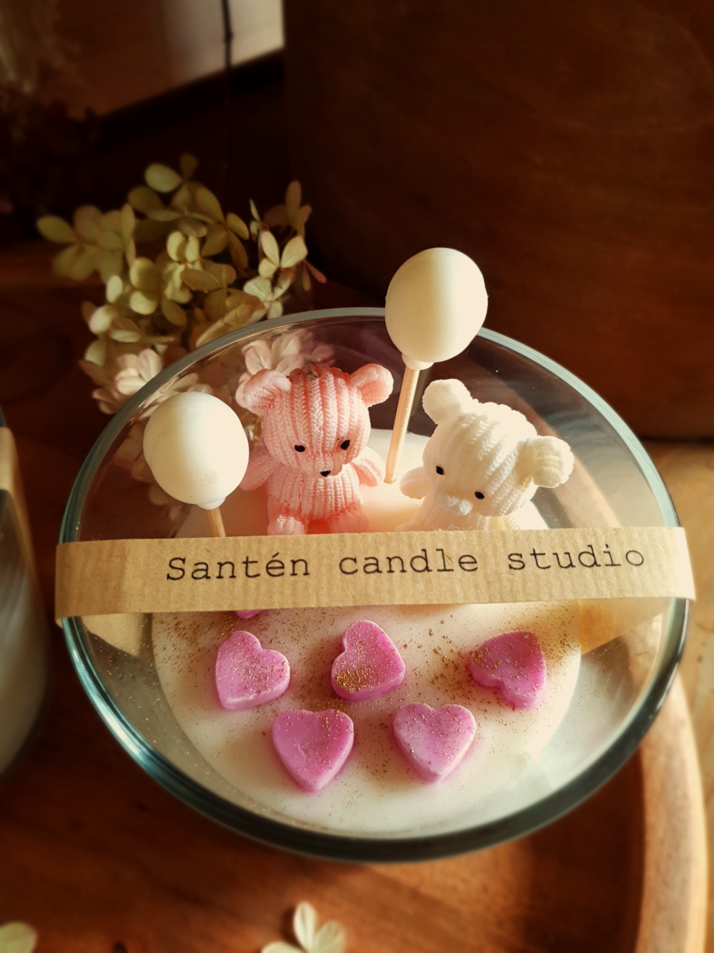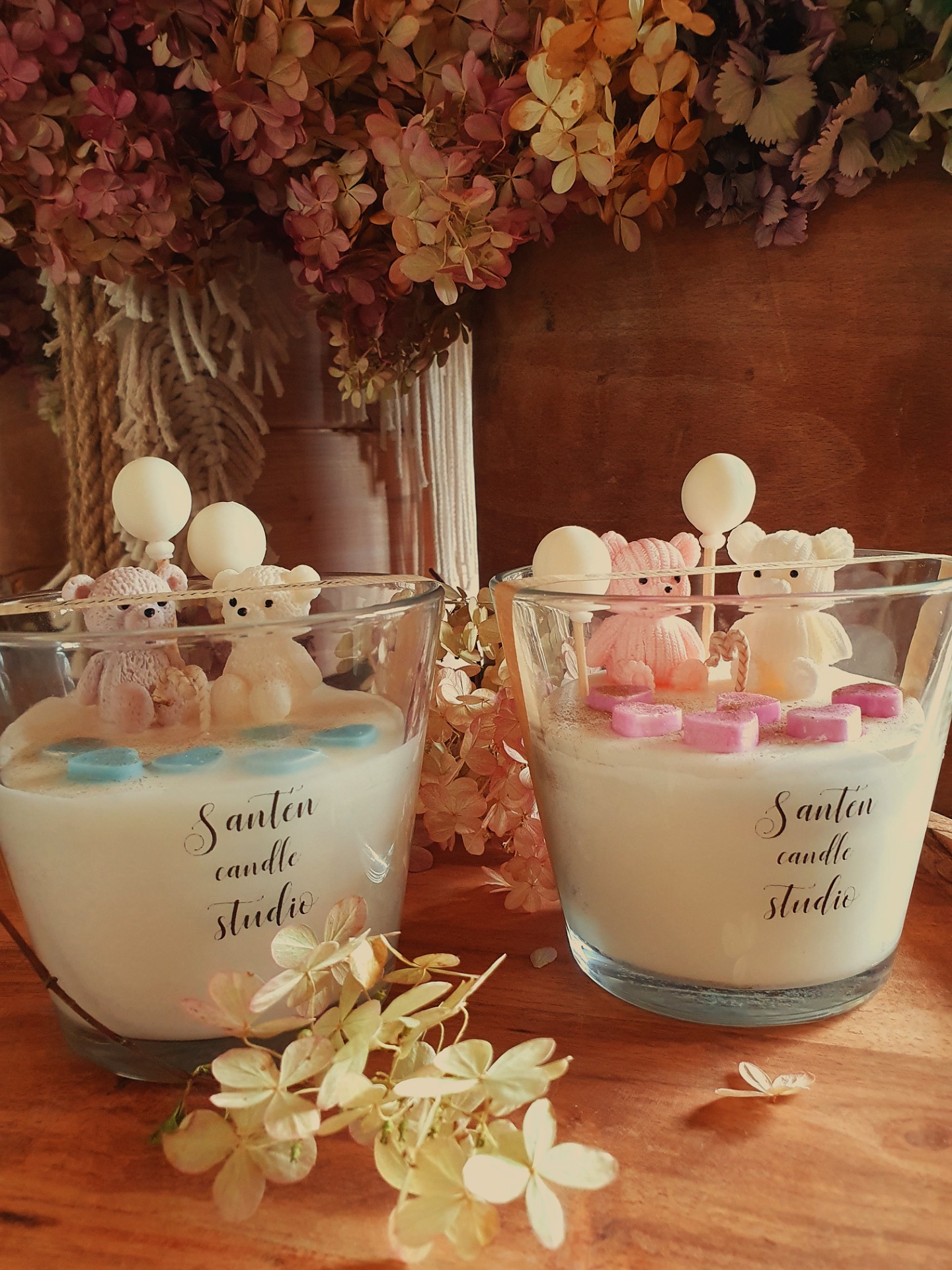 Svíčka se dvěma medvídky ze sójového vosku bez vůně.