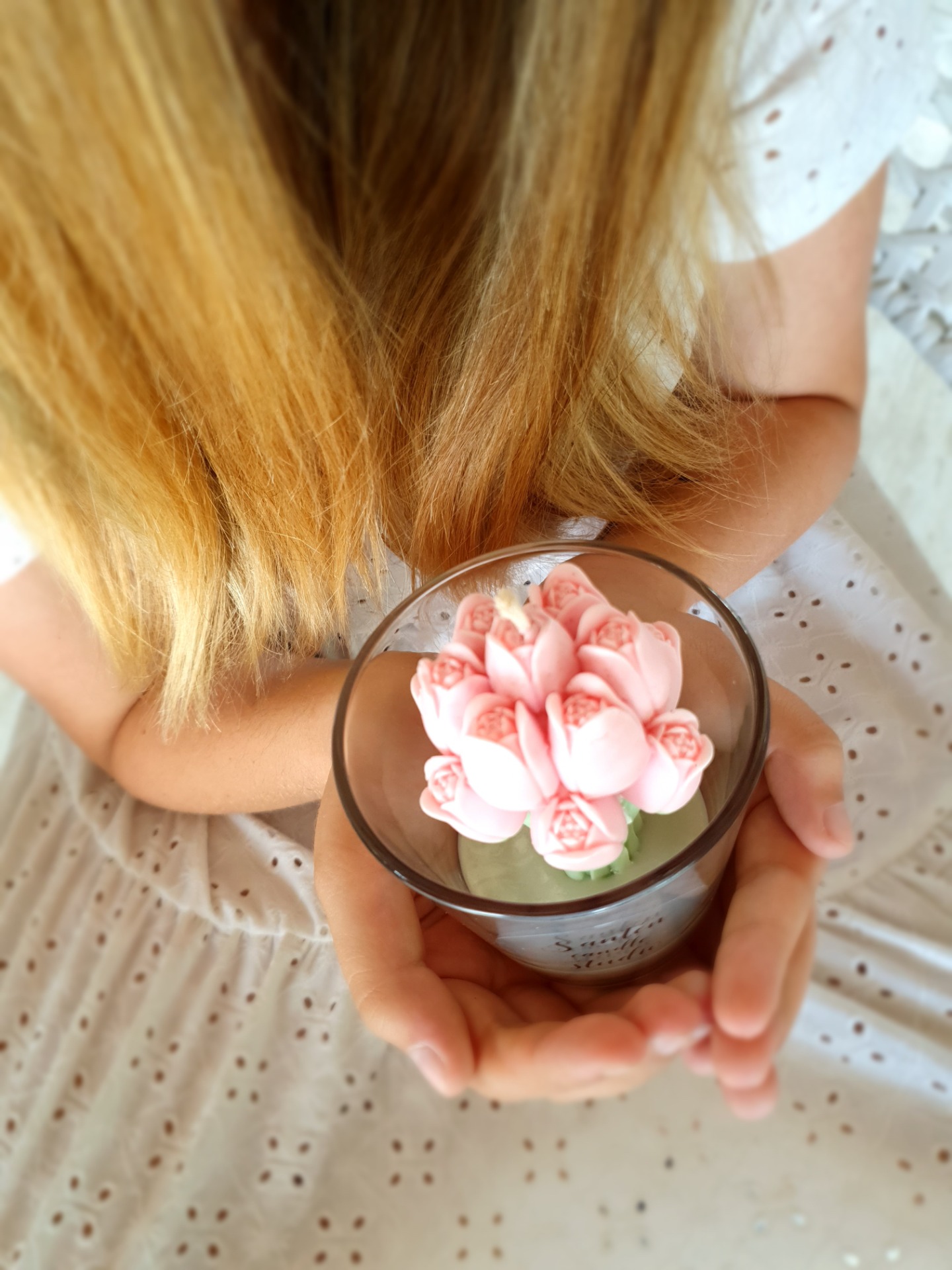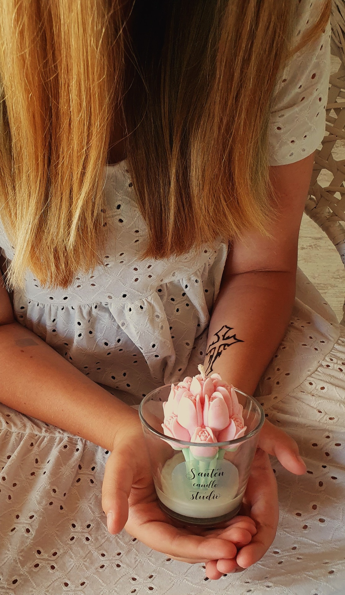 Objevte spojení elegance, přírody a ručního umění v jedné svíčce. Tato originální dekorativní svíčka vypadá jako čerstvá kytice růžových tulipánů, ale místo vůně květin přináší čisté, klidné světlo bez parfemace – ideální pro citlivé duše i minimalistické interiéry.